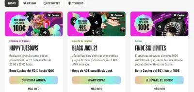 18+. Juega con responsabilidad. Aplican términos y condiciones. Bono sujeto a requisitos de apuesta x35. Solo para nuevos usuarios residentes en España.
